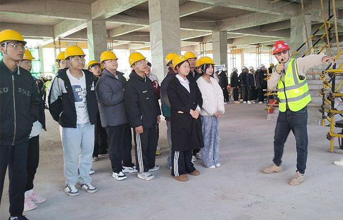 參加活動(dòng)的師生接受統(tǒng)一安全技術(shù)交底后,項(xiàng)目經(jīng)理介紹了項(xiàng)目概況、施工技術(shù)、進(jìn)度以及現(xiàn)場管理等情況,由項(xiàng)目部講解員帶領(lǐng)學(xué)生進(jìn)入各個(gè)施工區(qū)域參觀,了解項(xiàng)目現(xiàn)場建筑材料、施工機(jī)械和生產(chǎn)工藝?,F(xiàn)場還設(shè)置了問答環(huán)節(jié),校方各專業(yè)負(fù)責(zé)人、學(xué)生與現(xiàn)場技術(shù)人員進(jìn)行交流互動(dòng),深入了解建筑行業(yè)發(fā)展趨勢和各項(xiàng)技術(shù)在實(shí)際施工中的應(yīng)用。