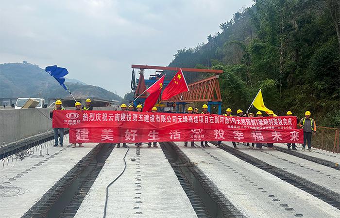 1月6日,由公司路橋五部負(fù)責(zé)施工的元綠高速公路項(xiàng)目土建七分部阿德3號(hào)特大橋左幅T梁順利架設(shè)完成。