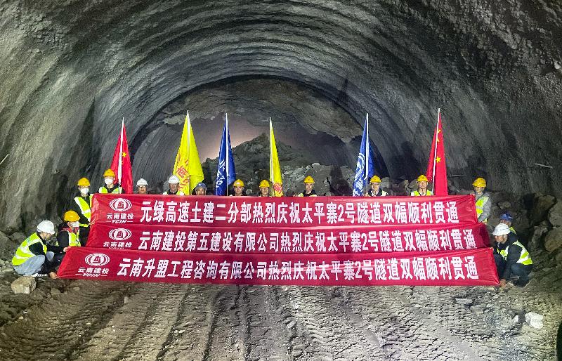 1月12日,由公司路橋五部負(fù)責(zé)施工的元綠高速公路項(xiàng)目土建二分部太平寨2號(hào)隧道雙幅順利貫通。