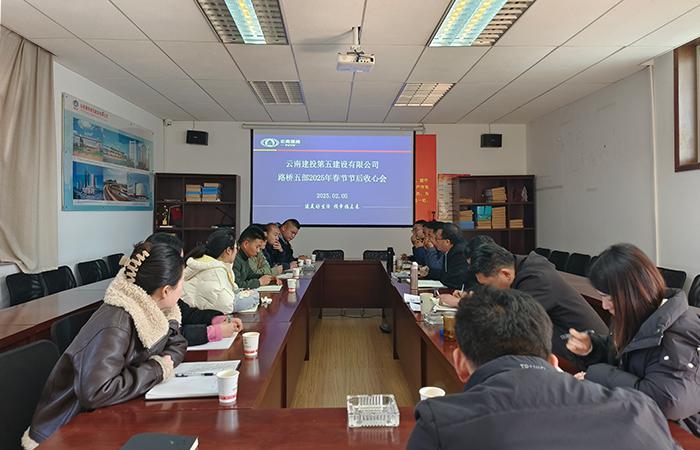 2月5日,路橋五部組織召開2025年春節(jié)后收心會(huì),安排部署近期重點(diǎn)工作,統(tǒng)一思想、凝聚共識(shí),確保今年工作開好局、起好步。直管部班子成員、在昆項(xiàng)目經(jīng)理、各科室負(fù)責(zé)人及科員共20人參加會(huì)議。