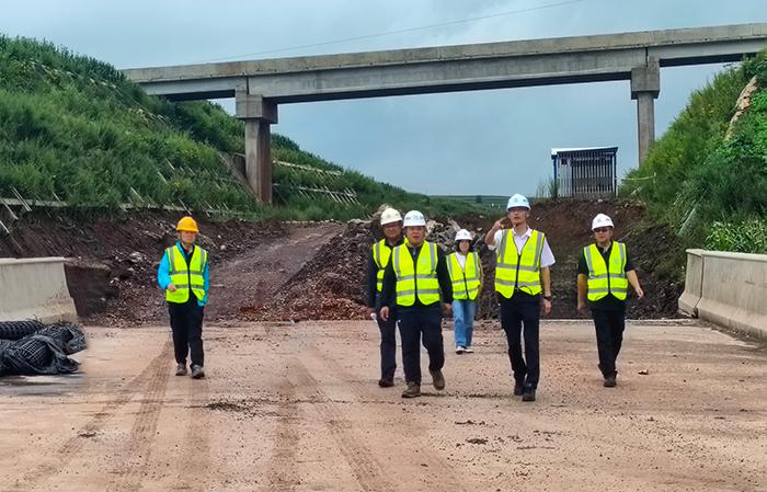 仲金榮一行深入施工現(xiàn)場,實地查看項目高邊坡、橋面系施工等關鍵作業(yè)點,詳細了解安全、質(zhì)量及工程進度管控等情況。