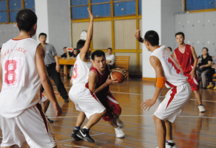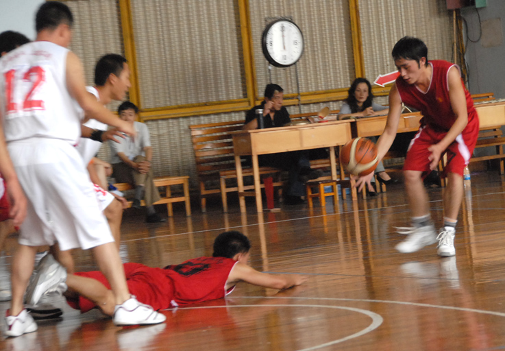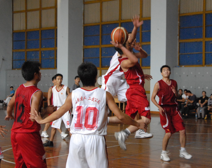 開賽后,他們同心協(xié)力,一度以17比9領(lǐng)先,逼對方換上了主力隊(duì)員。雖然此后形勢急轉(zhuǎn)直下,比分被對方反超,但五建上場隊(duì)員們?nèi)匀σ愿?,頑強(qiáng)拼搏,絕不放棄. 對方由于有10多名隊(duì)員輪換,而五建上場的6名隊(duì)員基本無法輪換,可是直到終場,你從他們身上看不到一絲一毫的疲憊,看不到一丁一點(diǎn)的懈怠。雖然觀眾不多,雖然吶喊助威之聲稀少,雖然是到了體力極大消耗之后的下半場,他們依然保持高昂的斗志。無論前場后場,他們都步步緊逼,不放過一個機(jī)會、不放棄每個球權(quán),個個全力拼搏,人人都被汗水濕透了全身。雖說最終以幾分之差告負(fù),但是體育的精神,頑強(qiáng)的拼搏,被他們作出了實(shí)實(shí)在在的演繹。奉獻(xiàn)給觀眾的,是依然精彩的比賽。