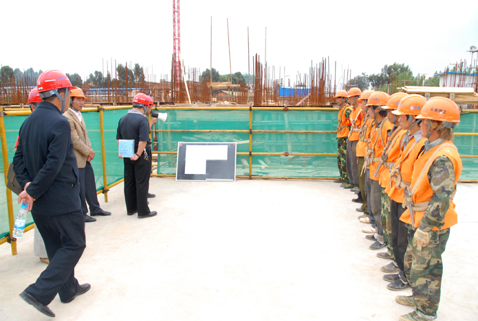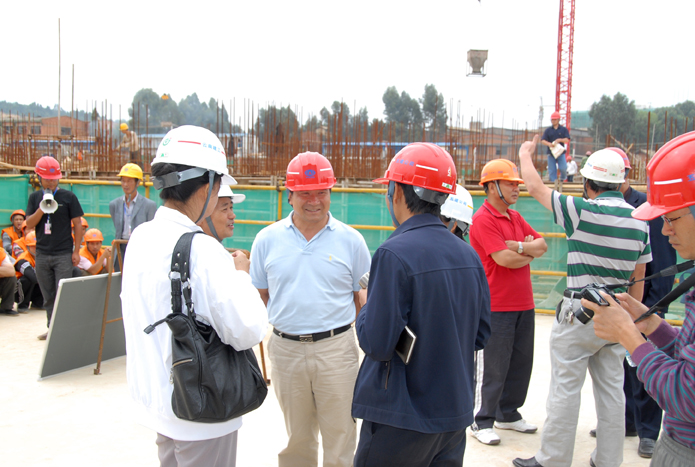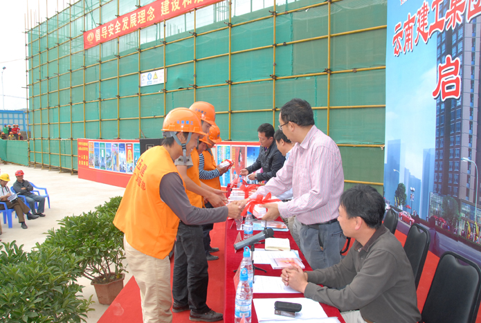 技術(shù)支持: 方森科技 2010年8月25日上午,集團(tuán)公司在五公司第一直管部承建的第三城•丹槿園施工現(xiàn)場召開施工現(xiàn)場班組安全建設(shè)啟動儀式現(xiàn)場會。昆明市建筑安全監(jiān)督管理站站長梁少軍,集團(tuán)公司副總經(jīng)理楊濤、安全總監(jiān)段益慶、生產(chǎn)安全處主任蘇雄斌,五公司董事長、黨委書記楊福和出席會議。會議由段益慶主持。