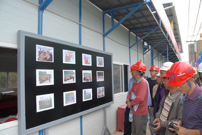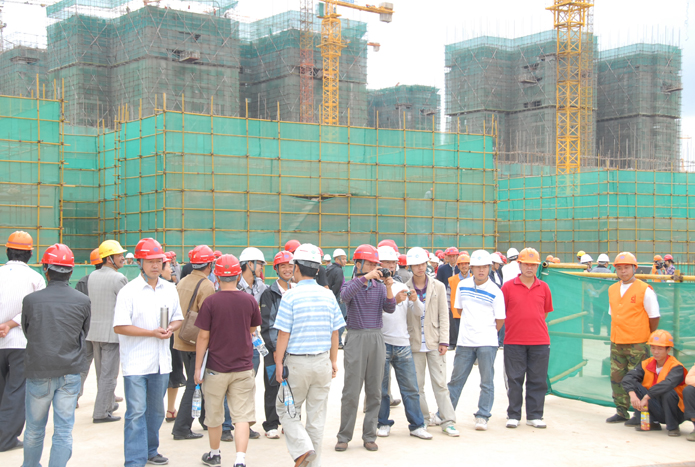 會后,所有參會人員參觀了五公司第三城•丹槿園項目現(xiàn)場安全、文明施工管理和班組班前活動。